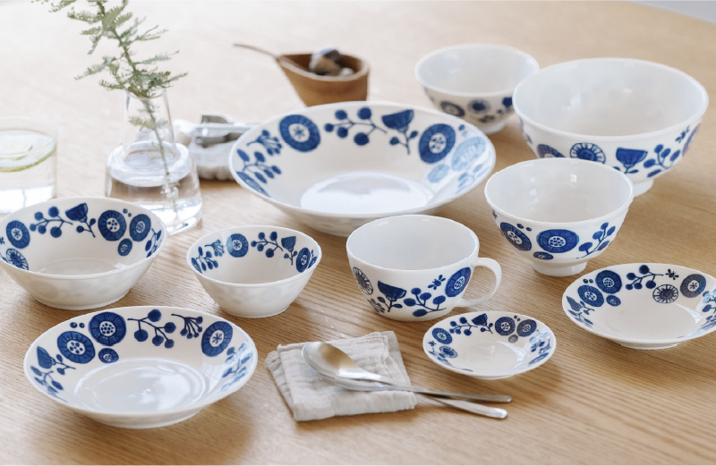 「収納しやすく、長く使えて、安全な素材」。この3つの安心を基準に、ご家庭用から業務用まで、日々の食卓を豊かに彩るうつわをお届けしています。